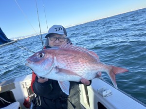 ギリギリ朝の上げ残りに間に合ってひと流し目から幸先よくマダイキャッチ🤩🤩